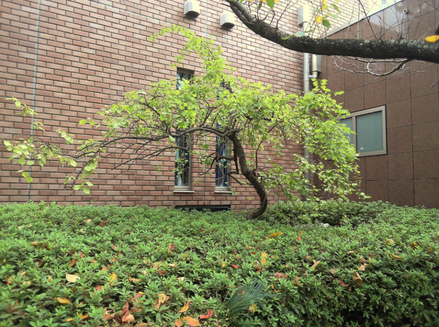 ↑しだれ紅梅(正門から本館への道)