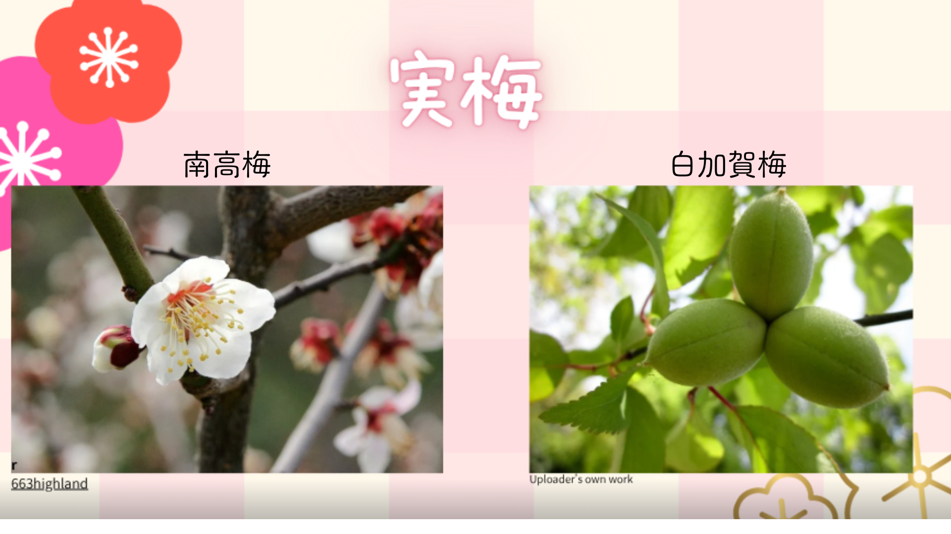 梅はまず、「花梅」(はなうめ)と「実梅」(みうめ)に分けられます!