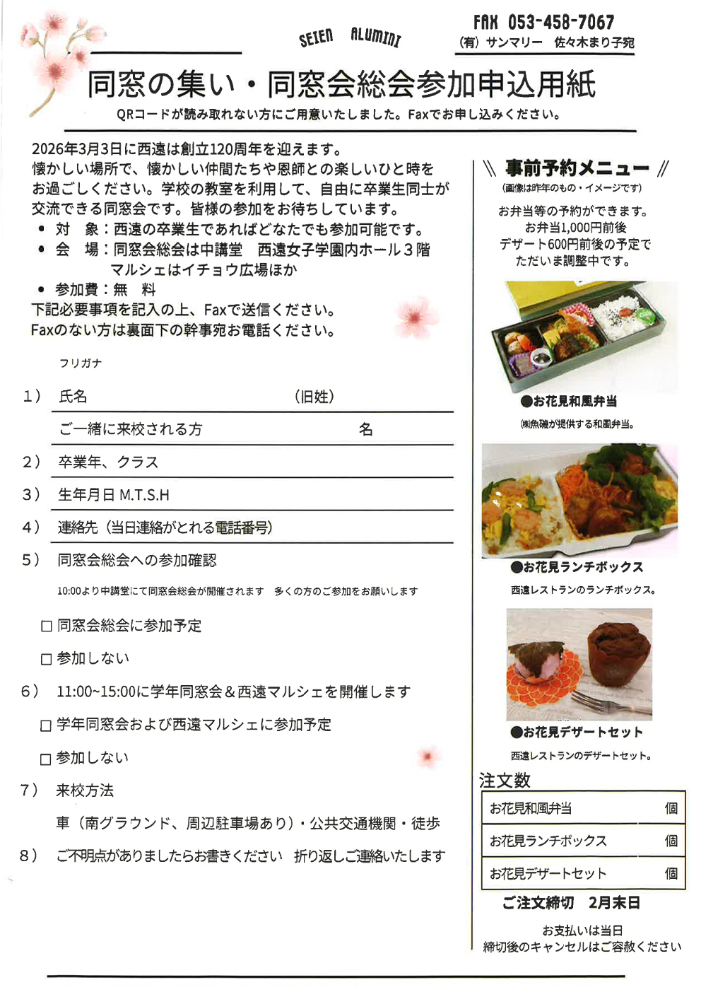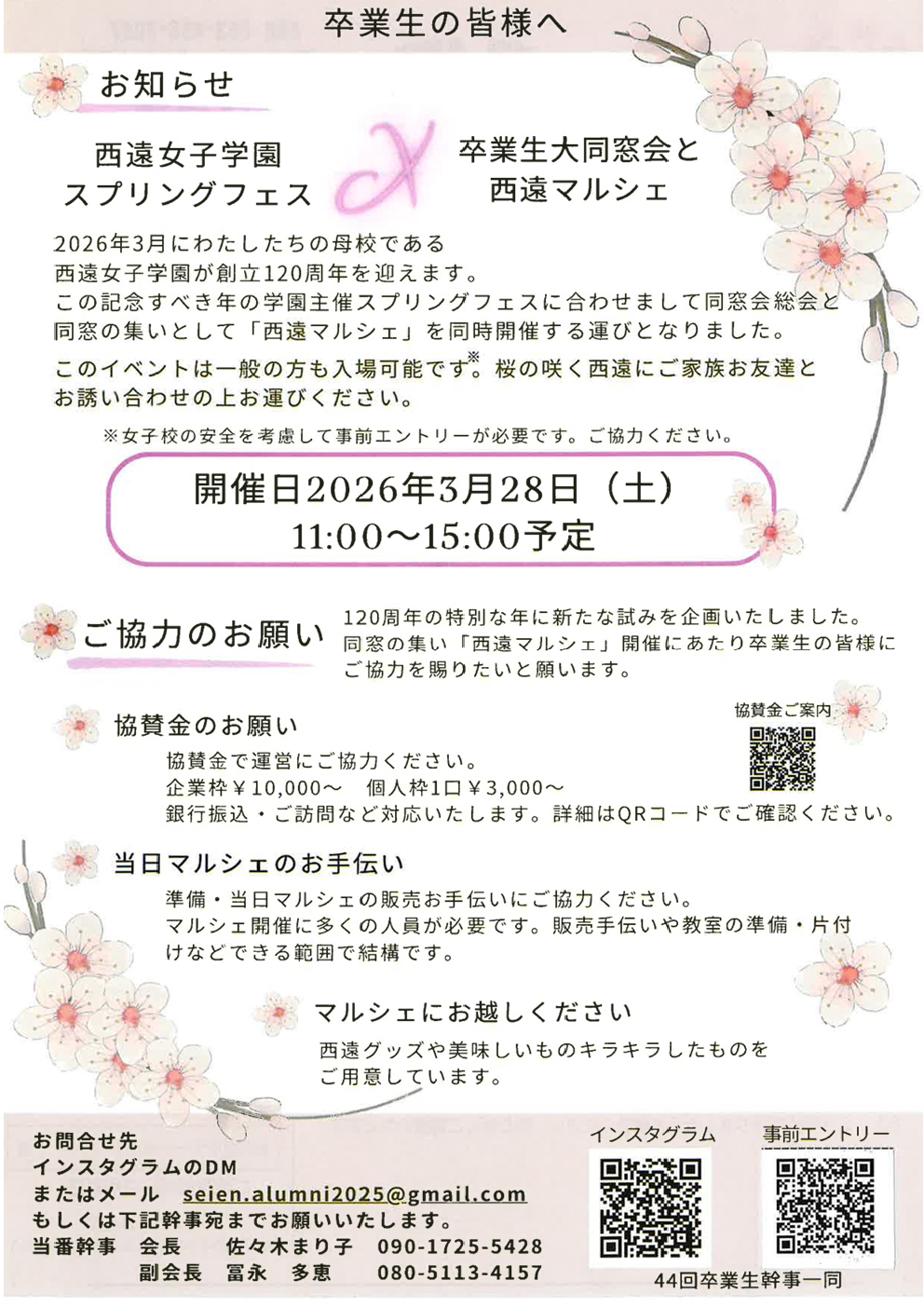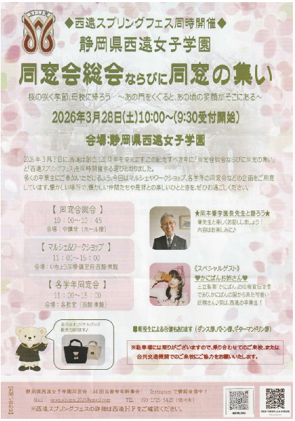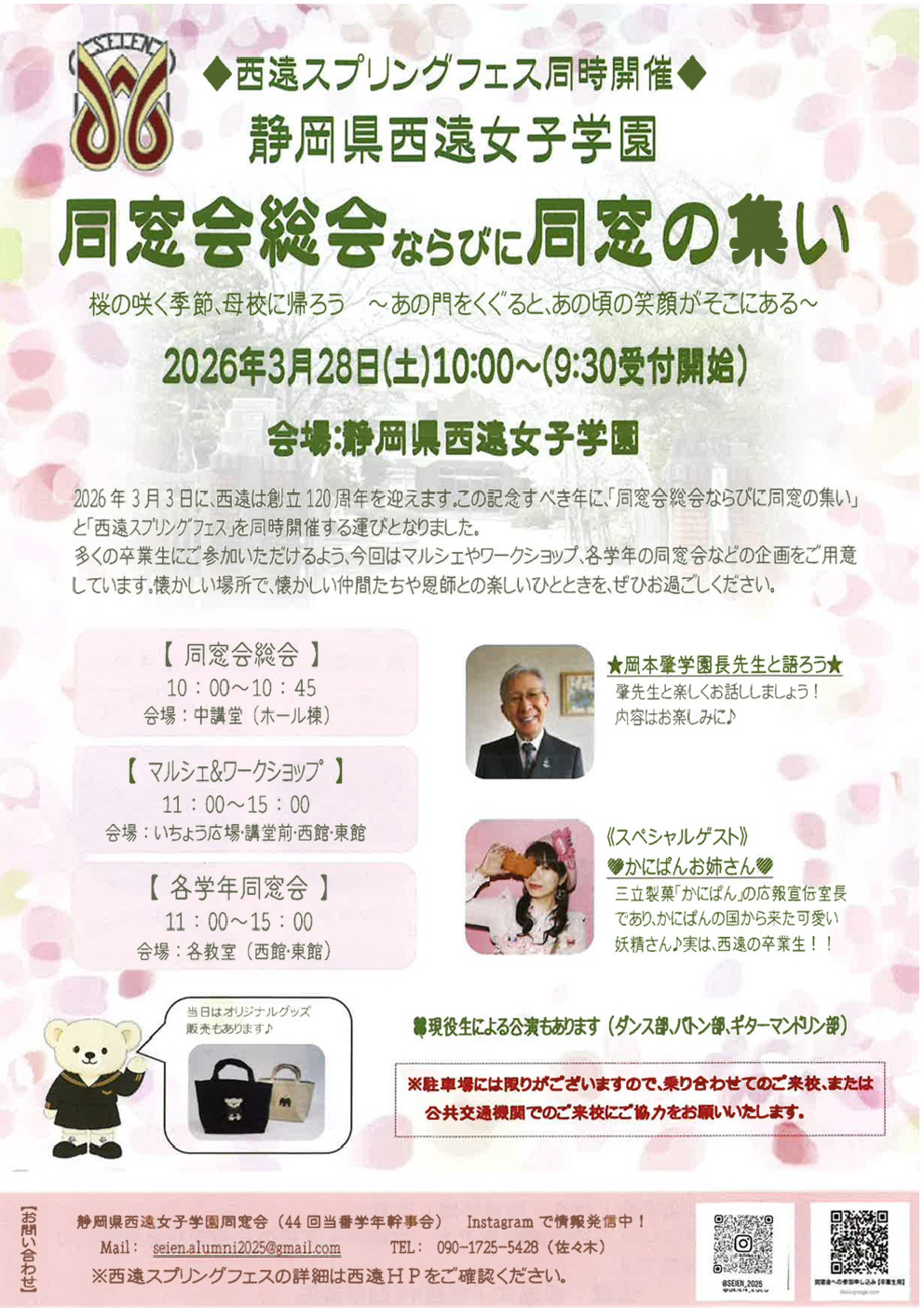 2026年『同窓会総会ならびに同窓の集い』『西遠女子学園スプリングフェス』ご案内