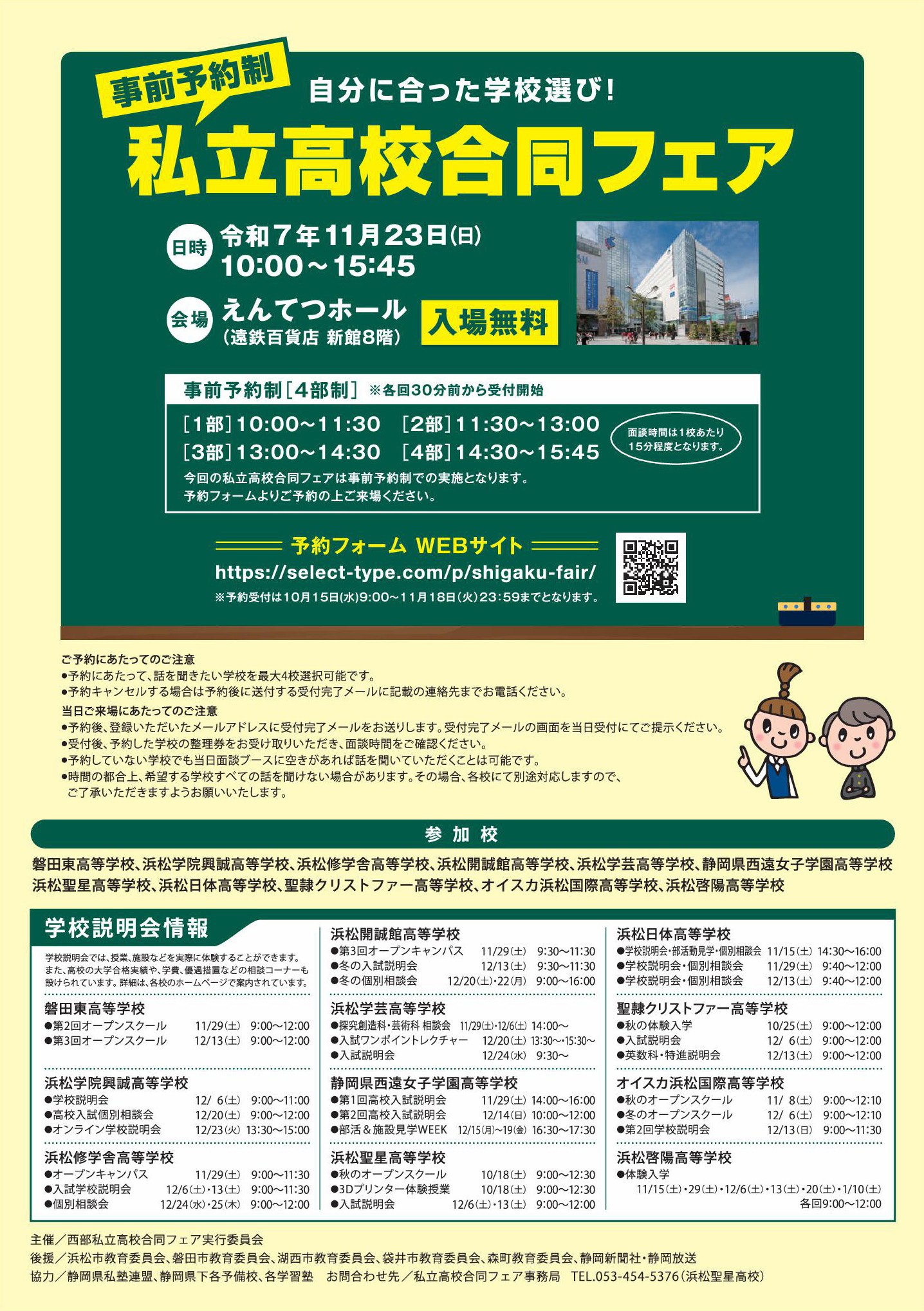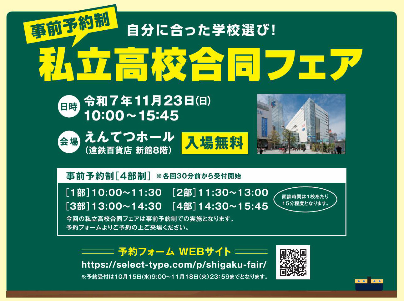 今年度の私立高校合同フェアは事前予約制での開催となります。