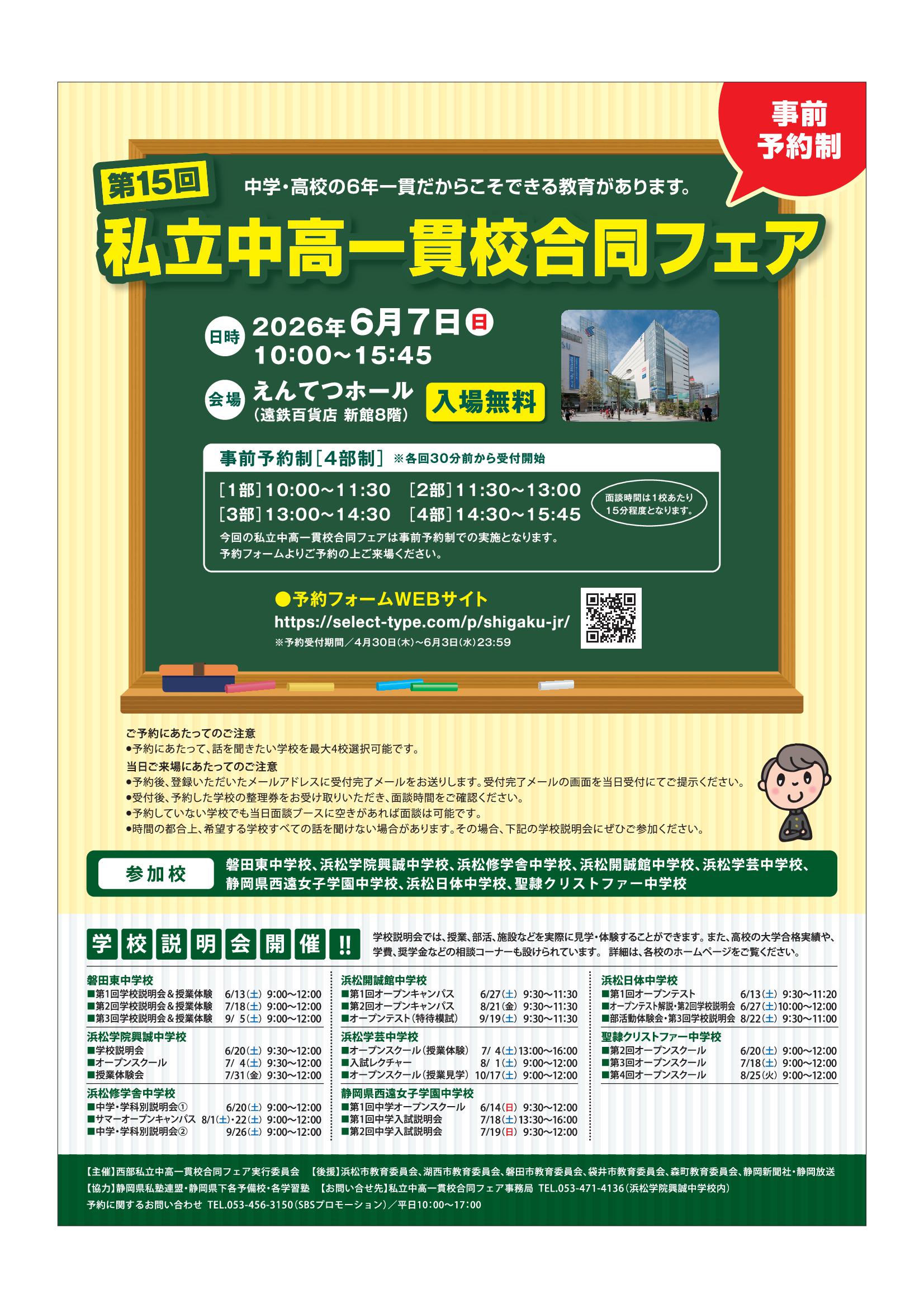 ホーム >  お知らせ >  6/7(日)私立中高一貫校合同フェア開催