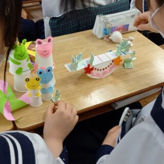 話題 授業風景 5年生の家庭科の授業中。来週には幼稚園に出向くので、その準備として、遊び道具を手作りしていました。園児の皆さんに見て触れて動かして楽しんでもらえるように、工夫を凝らしています。グループごと、全て違う種類の玩具を用意していたのも、素晴らしい... 2025.10.17 話題