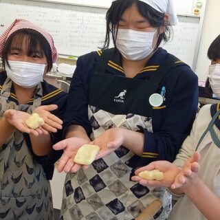 話題 いい匂いに誘われて 昨日、調理室に電気が灯り、楽しそうな声が聞こえるので覗いてみました。中学2年生が居ました。色とりどりのエプロン&三角巾姿がキュートです。 芋もちとみかんゼリーを作るようです。 一緒にお手々でこねこね、定番のまん丸以外の形に仕上... 2026.03.13 話題