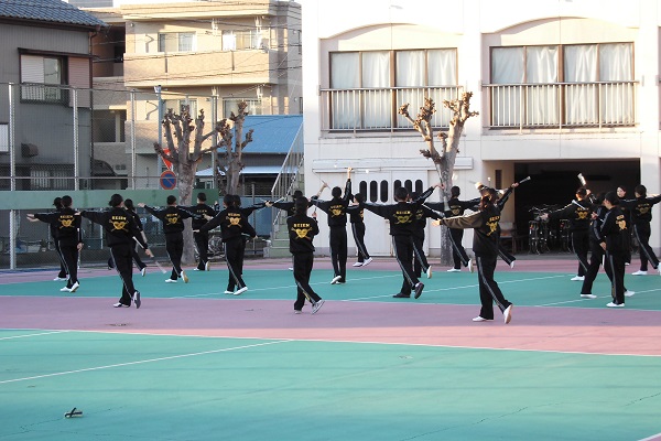 バトン部。今日はオーディションもあるとのこと。準備運動も真剣そのもの。