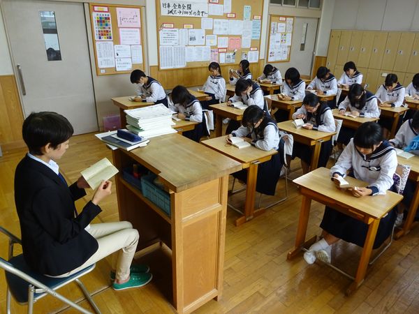 生徒たちと一緒に担任の先生も読書をします。落ち着いた一日の始まりです。