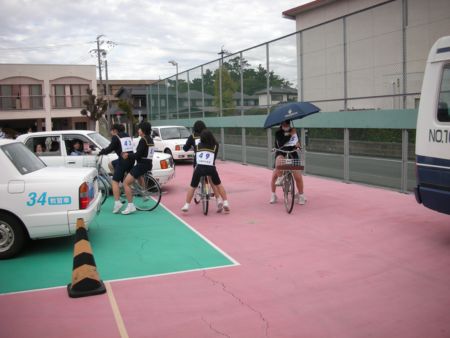 生徒は、自動車・自転車・見学者にわかれ体験をしました。