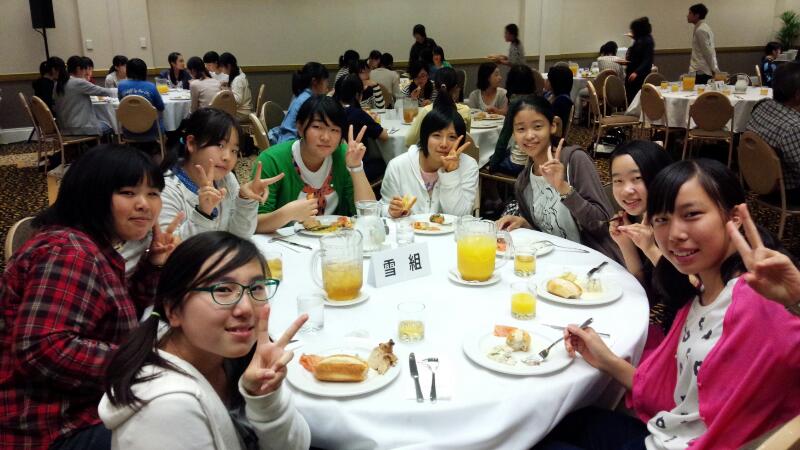 今回の旅行初のホテルでのディナーです。生徒たちはビュッフェの料理に大はしゃぎ、私はようやく魚と野菜に出会えてほっと一安心でした。