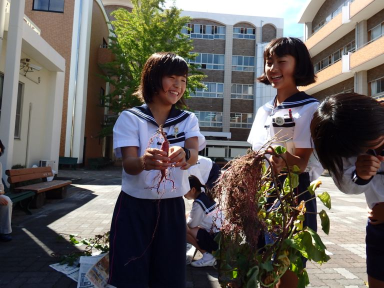 サツマイモ掘り 話題 2016.09.27 中学生徒会の企画したサツマイモ栽培、本日はいよいよサツマイモ掘りです。 中学生徒会長のあいさつ・諸注意の後、各クラスサツマイモ掘りをスタートしました。 残念ながら、大収穫とはいきませんでした。 作物を育てるということが、いかに大変なことか少しは理解できたのではないでしょか。 文責:鈴木彰文