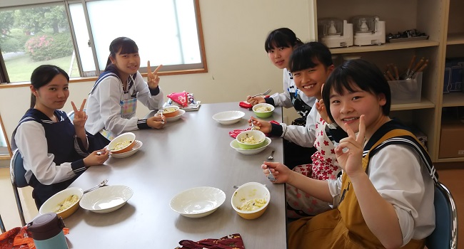 今日は5年生の生徒たちが、家庭科の時間に調理実習を行いました。