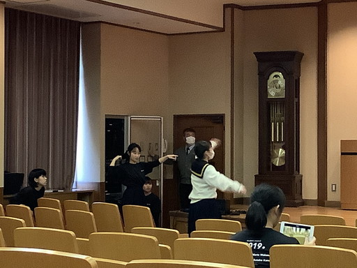 放課後,中講堂では高校生徒会執行部の生徒たちが今日行われるはずだった第3部の動画を撮っていました。6年生の先輩方に喜んでもらいたいという気持ちが伝わってきます。