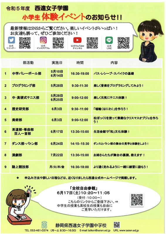 明日は小学4~6年生対象の「オープンスクール」が西遠女子学園を会場にして行われます。