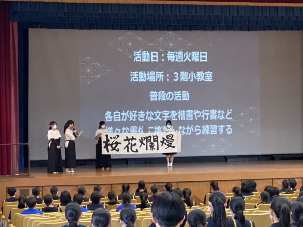 部活動説明会 話題 2024.04.11 2024.04.10 新入生のために各部が活動内容を工夫して紹介してくれました。新入生がドキドキワクワクするような説明で、新入生のこれからの西遠での生活がますます楽しくなりそうです。 新入生はこのあと部活見学を経て、ゴールデンウイーク後に正式に部員となります。 これからそれぞれの部活動に新しい風を吹かせ活動を盛り上げてくれることでしょう。 各部活の今後が楽しみです。 (文責:新井浩志)