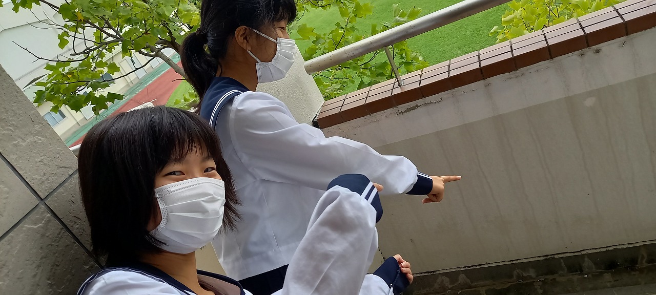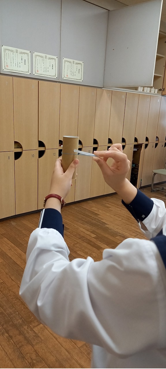 身の回りにある技術の工夫を観察して回りました。扉の取っ手、排水溝への傾斜など改めて気が付きましたね。教室によくある素材の木・金属・プラスチック。その素材ごと見て触って嗅いでみて・・と、五感をフル活動も面白かったです。
