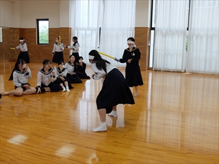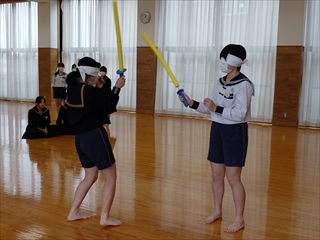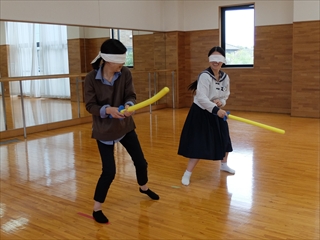 ホール棟体育室では3グループが合同で「気配切り」をして盛り上がっていました。