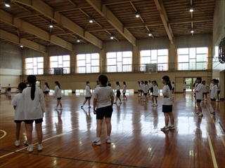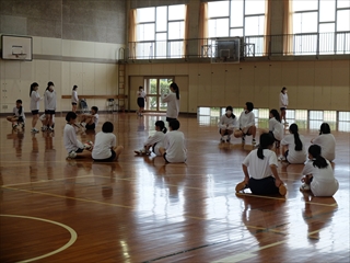 体育館では複数グループ合同でドッジボールをやっていました。私が見に行った頃には、試合に生き残った人の人数を数えていました。