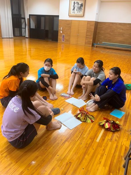 現在ダンス部は今後の発表に向けて作品作りを進めています。創作ダンスは、単に振り付けを覚えるのではなく、自分たちの想いや感情を体で表現することを重視しています。そのため、部員同士で日々テーマや演出、動きのアイディアを出し合いながら、日々話し合いと練習を重ねています。