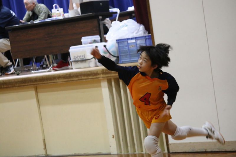 コンビをさせないサーブと緩急の攻撃がテーマです。1,2セット共に狙い通りの動きで相手の得意パターン封じます。しかし、2段トスに課題があり攻撃まで展開することが出来ません。キャッチも横の動きに迷いがあり、まだまだ発展途上です。それでも、夏から練習してきた基礎が随所でみられ2-0で勝ち切り合同チームで初優勝です。