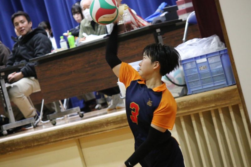 1セット目は、本校チームのサーブとキレのあるスパイクが随所で決まり大差でこのセットを取ります。2セット目は、キャッチと2段トスが大きく乱れ、試合の流れを掴めず簡単に落とします。3セット目の序盤も相変わらずミスが続き流れを掴むことが出来ません。15-19でタイムアウト。平常心を失ったプレーに苦言を呈し、観察と基礎の徹底を確認します。そこから本校チームのサーブが走り流れを掴みます。最後は、相手のスパイクミスで25-23となり決勝進出を決めます。