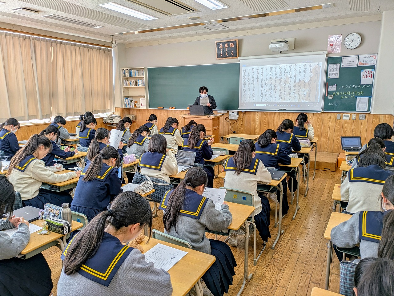 本日、中学2年生の社会科の授業を使って、浜松市博物館学芸員橋本先生による古文書の授業が行われました。