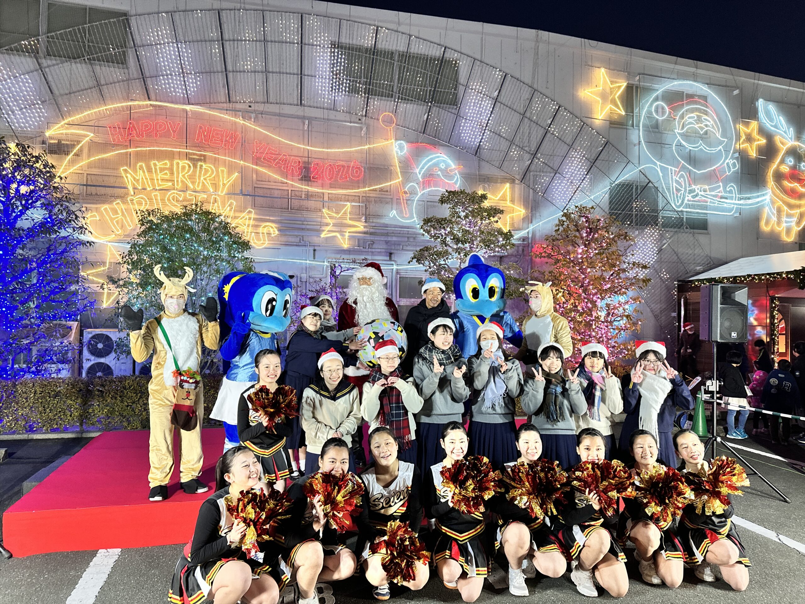 スクロールさんのイルミネーションの前で記念撮影 → → →