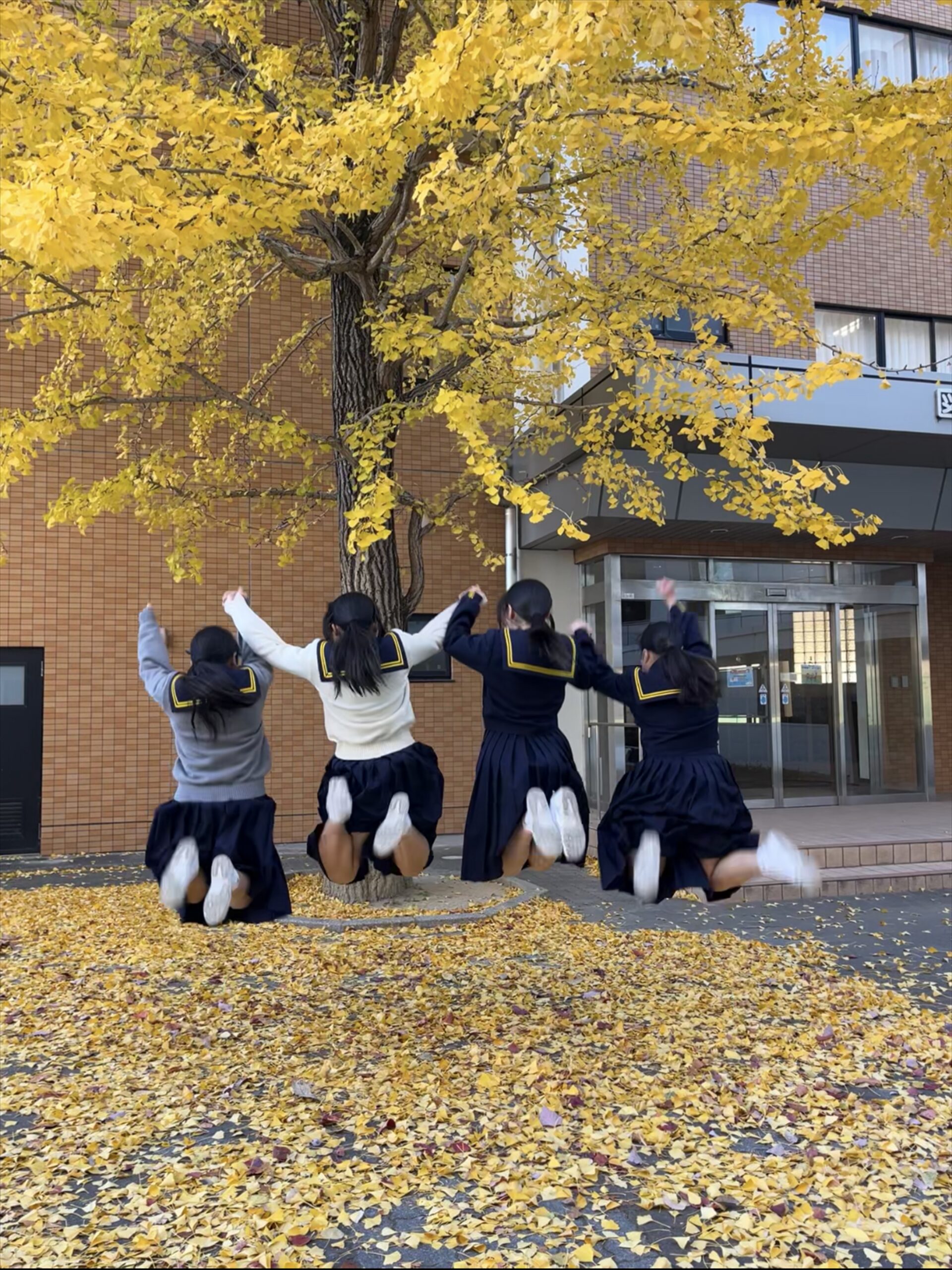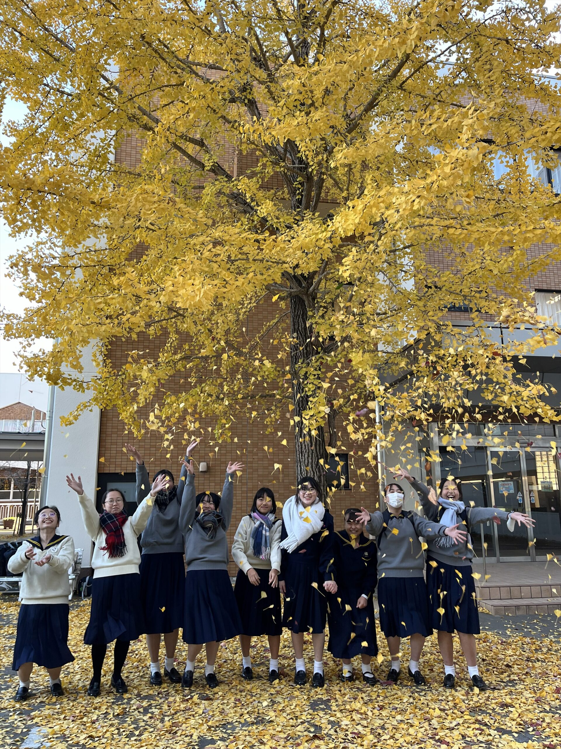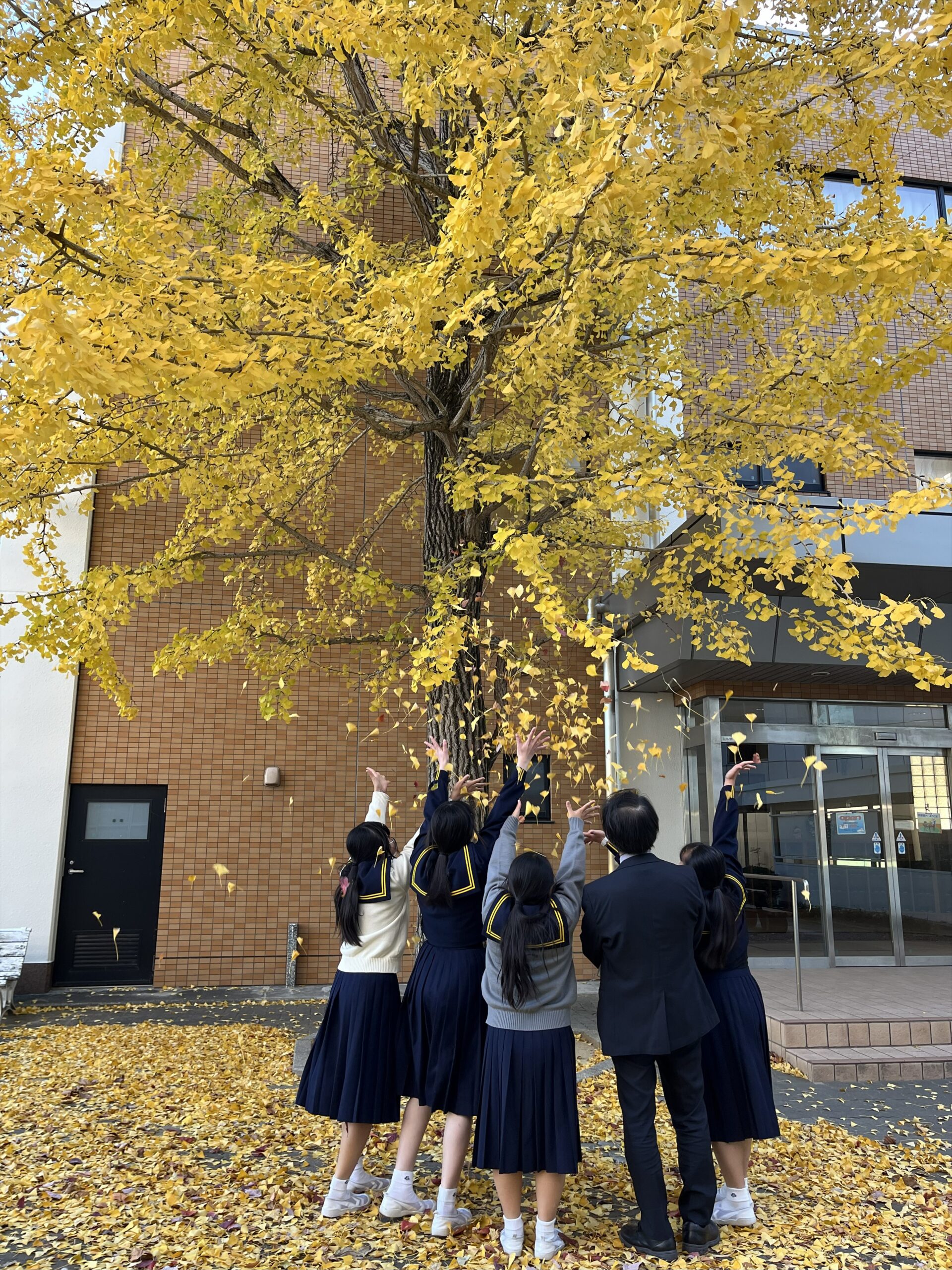 出発前にイチョウの前でインターアクト部でパチリ!!