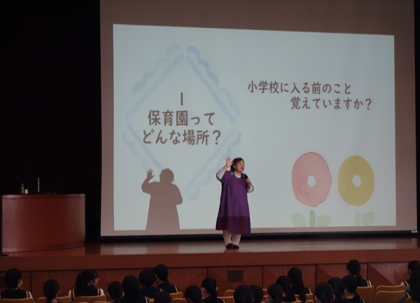 こどもに関わる保育者の基本姿勢、中高生を含めたこどもを取り巻く環境についての問題点を具体的な例をあげてお話しされ、人として女性としていかに生きるか深く考える機会となりました。