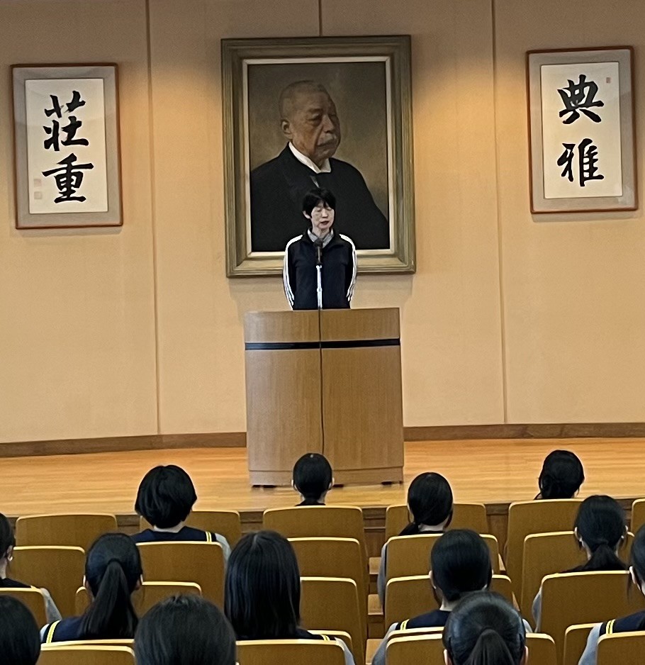 続いて進路部長の永井先生は、明日の共通テストだけでなく、ここからの入試全てに向けて、「平常心を保つこと」と「あきらめないこと」、そして「これから受験に向かうのは、長い人生の中のたった2か月だから、精一杯チャレンジして欲しい」とお話されました。