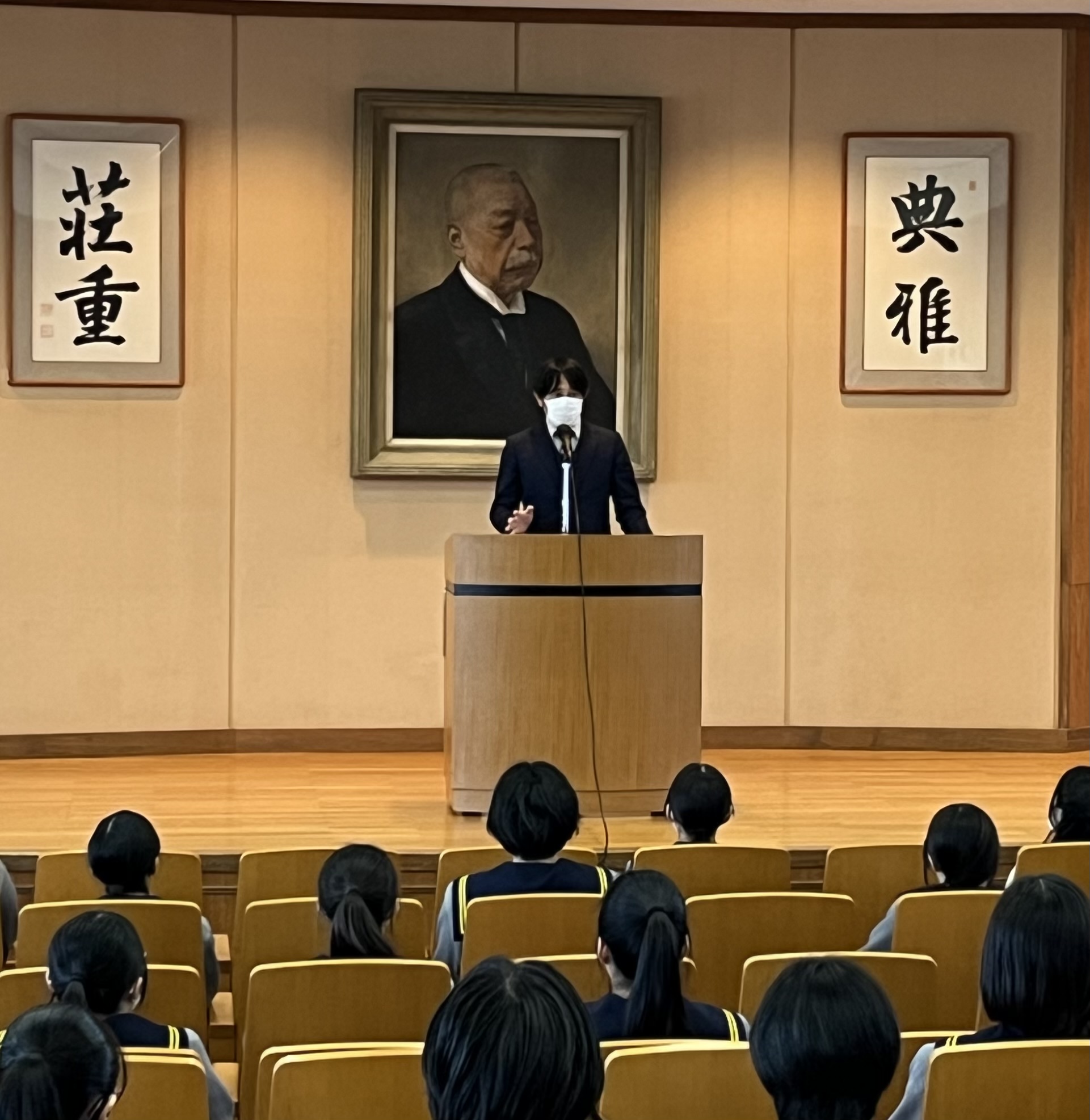 学年主任の白井先生は、受験は団体戦として「早く試験会場に行って自分たちの空間に」「いつもと違うのが本番であり、そういうものである」「プラスの言葉で互いに励まし合える」とお話されました。