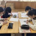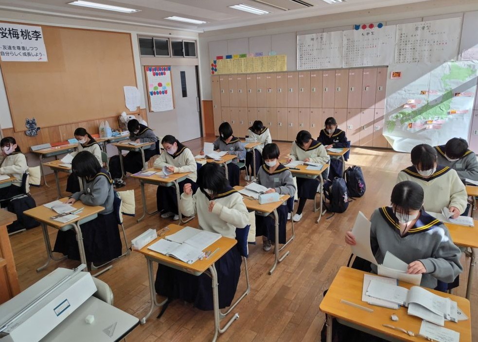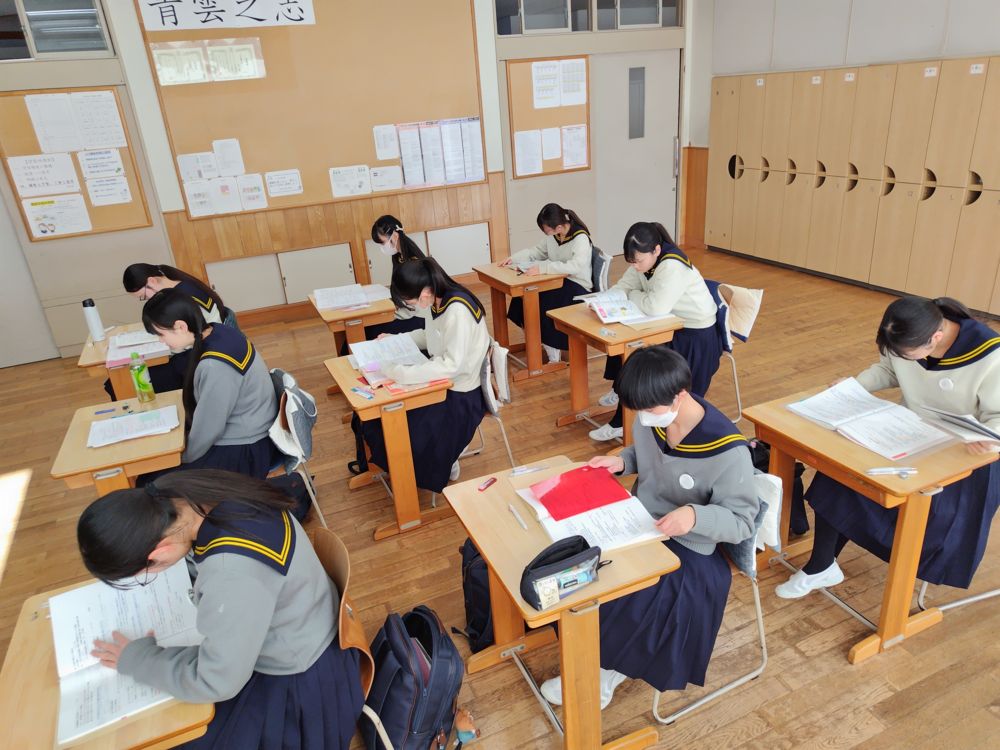 1月定期テスト最終日 話題260123094022294 2026.01.23 今日は定期テスト最終日です。 西遠ではテスト期間の休み時間は「一人自習」に取り組んでいます。15分間の休み時間は、気持ちのリフレッシュや次のテストの最終確認をして、個々に集中して過ごします。テストの前は最後の最後まで時間を有益につかいたいですね。 「歴史総合」のテスト前の4年生。 西遠独自のテスト科目「計算」前の1年生。1年生はこのテストが定期テスト最後の科目。あと少しです、頑張って! 文責 永井吉子