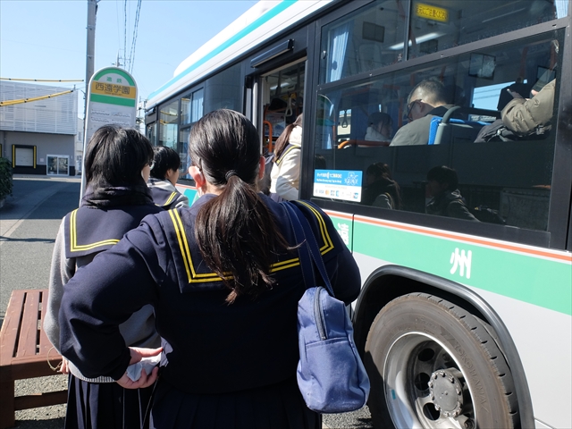 3時間目の授業が終わったら、特別に《早弁》をして支度を整え、2台のバスに分乗して出発です。(もうひとつのグループは「西遠学園入口」からバスに乗りました。)