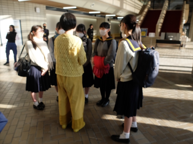 今回観劇した演目は、三島由紀夫の近代能楽集に収録されている「弱法師(よろぼし)」。これは能の弱法師から三島由紀夫がシチュエーションを変えて書いた戯曲で、戦争から15年後の1960年の家庭裁判所が舞台の物語です。4年生は、先週の土曜日に能の弱法師や朗読劇の三島版弱法師を少しだけ見て予習をして今日を迎えました。