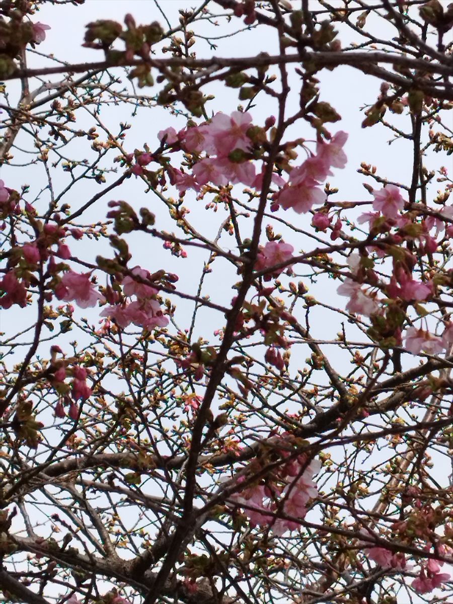 先日の校長ブログで開花の様子が紹介されていた河津桜(カワヅザクラ)。