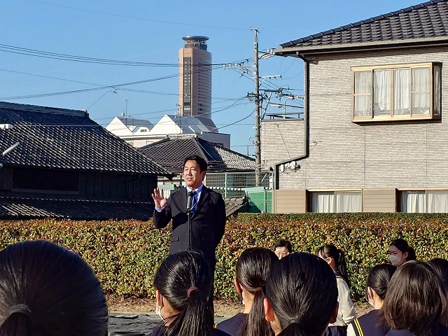 西遠の校舎の外観に込められている想いや、校内のお気に入りの場所を見つけてほしいなど、ユーモアたっぷりのお話でした。