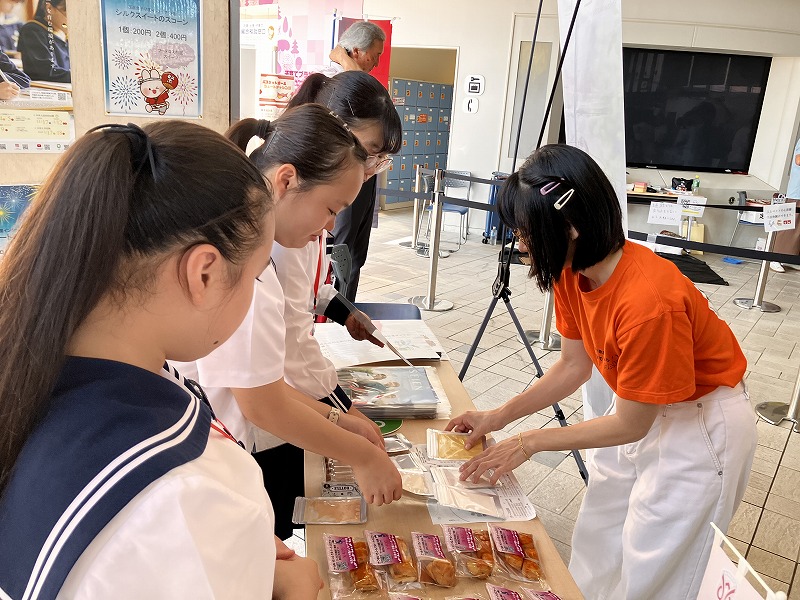 またインターアクト部は防災備蓄食品の提案として「環境にも防災にも貢献するエコスイーツ」の販売を行っています。昨年夏は「BOUSAIキャラバンin豊橋ココニコ」でブース出店をして多くの方々にこのエコスイーツを販売して取り組みを知ってもらいました。今年の夏は浜松開催ですので、さらに多くの人に知ってもらいたいと思って活動しています。