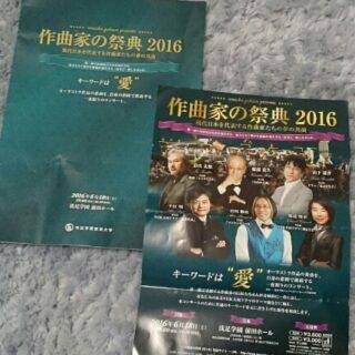 雑感 ステキなコンサート 21日のブログで、少しお話しした「ステキなコンサート」、 それは、「作曲家の祭典2016」というコンサートでした。 現代日本を代表する6人の作曲家が「愛」をテーマにした新曲を発表するという、とても豪華なコンサートです。 「花より男子」の山下... 2016.06.26 雑感