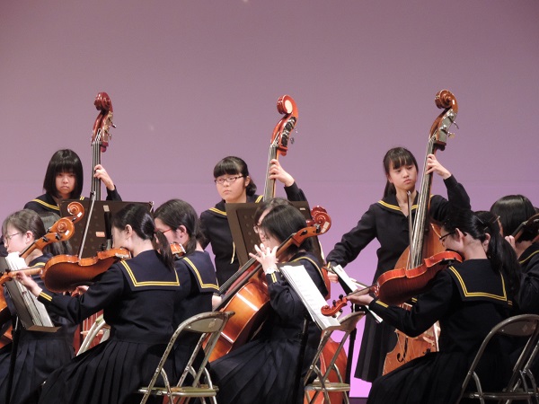 オーケストラ部員たちが、整列してお客様をお迎えしました。