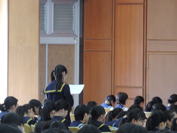 中学生徒会の執行部は、堂々と後期の基本方針を述べていました。