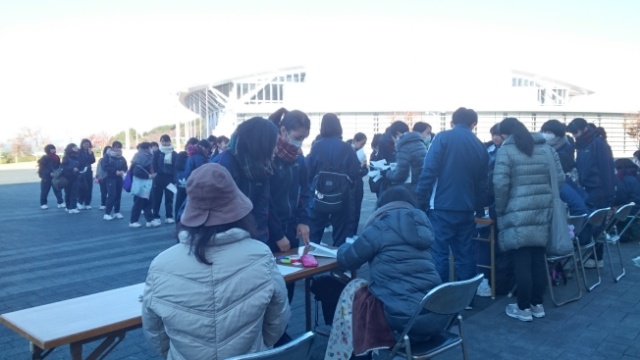 JRを利用して大勢の生徒が愛野駅から歩いてきます。