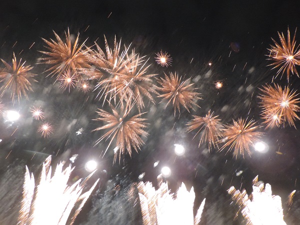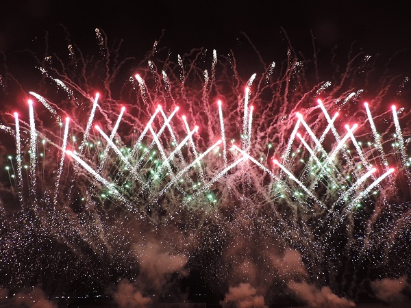 煙で見えなくなることもなく、1時間半の花火の競演は瞬く間に過ぎました。