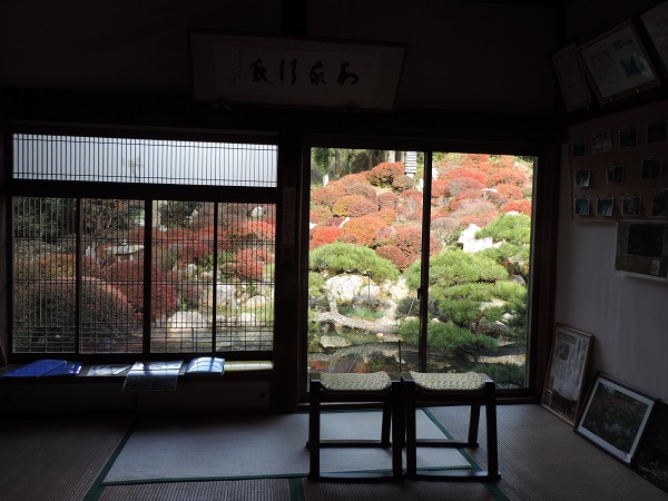奥のお部屋に向かうと、真っ赤なドウダンツツジの色が目に飛び込みました。