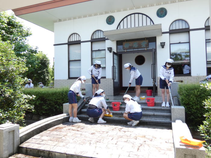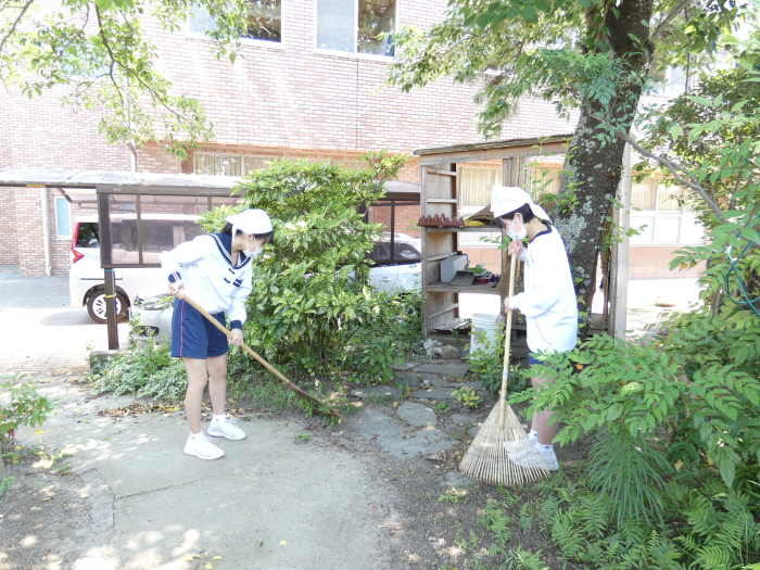 外掃除では、広い学園の隅々まで、皆の掃除の手が入っています。草取りや落ち葉掃き、今日も姉妹グループの総力を結集して頑張ってくれました。