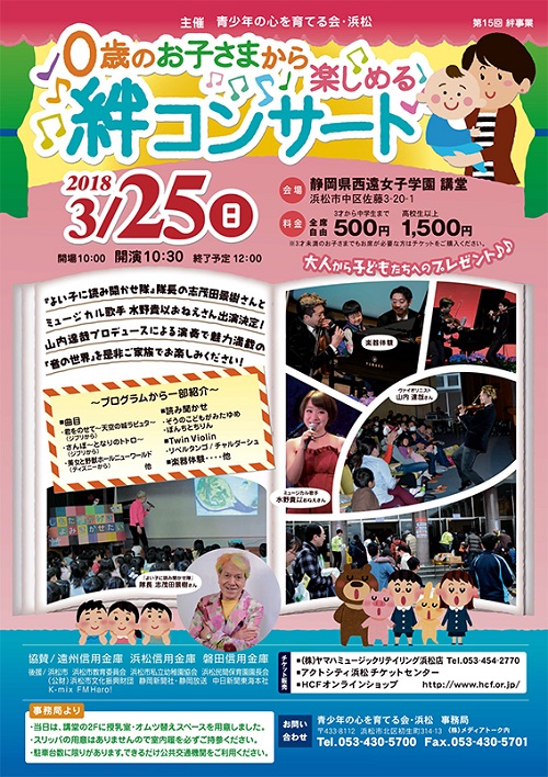 明日行われる「絆コンサート」は、「青少年の心を育てる会・浜松」が 主催して毎年行われているコンサートです。
