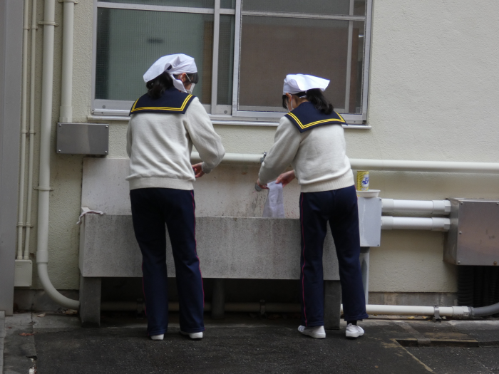 12月の雨は冷たいですね。昨日より気温が上がるといわれていた浜松ですが、太陽のない日はやっぱり寒いです。姉妹掃除の時間、冷たい水を使って掃除に励んでくれる生徒がたくさんいて、頭が下がります。バケツでの雑巾絞り、床の雑巾がけ、窓のお掃除などなど。学園美化に努めてくれてありがとう。