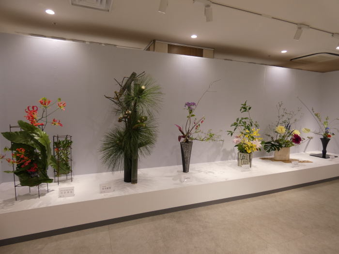週末、「中日いけばな芸術展」を訪れました。お二人の方に誘われて、同級生がお花を展示している日に行きたいと思い、学校帰りに寄ったいけばな展でした。