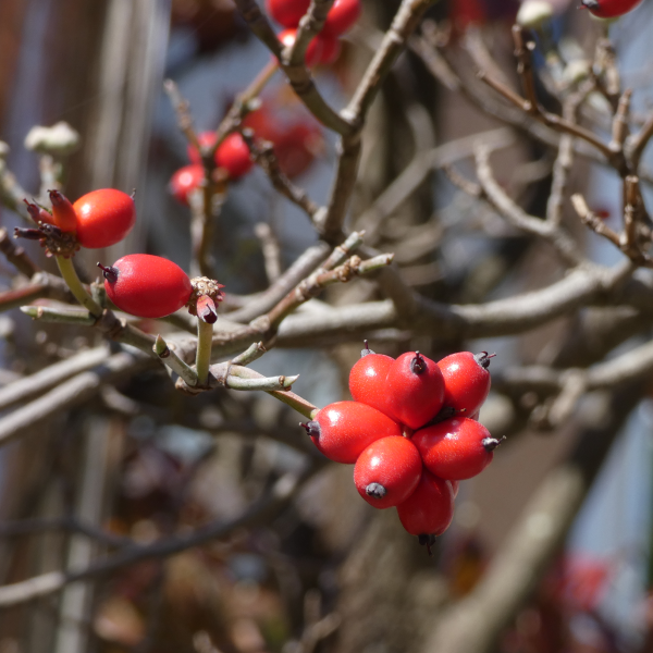 学園を巡りながら、秋の色にも気づかれたでしょうか。ハナミズキの赤い実と、モミジバフウのとげとげの実です。西遠の四季はとても美しいです。