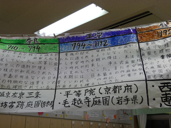 夏休みに一人一人が調べた内容をもとに、クラス展示テーマを決めて11月からコンクールの準備が始まり、12月の参観会までに仕上げるというスケジュールです。