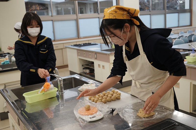 このうち、スコーンは、インターアクト部が企業とのコラボで作っている食品ロス削減スイーツ。練り込む野菜パウダーは、お店に出荷できない作物から作られています。シルクスイート(サツマイモ)の粉末が練り込まれた特製スコーンを、前日午後、部員たちが心を込めて作り、袋に詰めて完成させました。