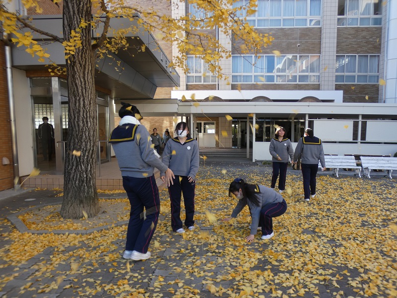 黄色いじゅうたん 西遠紹介 2024.12.19 いちょう広場のいちょうの黄色い葉が、地面を埋め尽くしています。昼休み、掃除の支度をして広場に来た生徒たちは、イチョウの葉と戯れて、童心にかえっていました。 数分後。姉妹掃除が始まりました。今度は、箒で黄色い葉を集める生徒たち。よく働きます。でも、風がひと吹きすると、また大量に散るイチョウの葉! 中村先生の名言が飛び出しました。「止まない雨はない!終わらないイチョウはない!」生徒たちは名言に励まされて、落ち葉との格闘を続けるのでした。皆、ありがとう! 広場がきれいになりました!