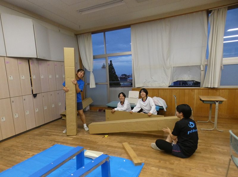 この段ボールの柱が何になるのか、これからが楽しみです。