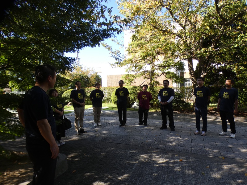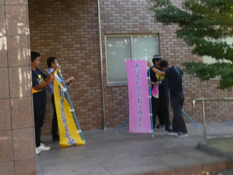 運動は7時40分からでしたが、7時半前にすでに集まってくださったお父さん方が、幟(のぼり)を準備してくださいました。皆さん、120周年の記念Tシャツを着ていらっしゃいますね。